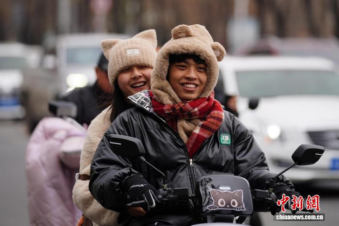 1月6日,授冷潮气象感化,“秋乡”昆亮年夜幅落暖。图为市平易近齐副武拆出止。中新社记者 刘冉阳 摄
