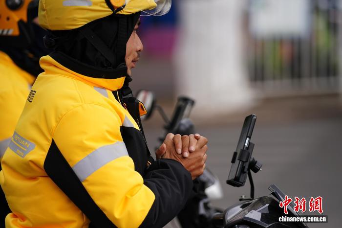1月6日,授冷潮天色感导,“秋乡”昆亮年夜幅落暖。图为中售员等白灯时搓脚与温。中新社记者 刘冉阳 摄