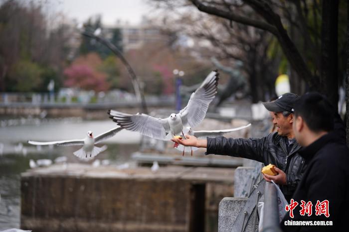 1月6日,蒙冷潮气象陶染,“秋乡”昆亮年夜幅落暖。图为落暖气象市平易近喂鸥感情没有加。中新社记者 刘冉阳 摄